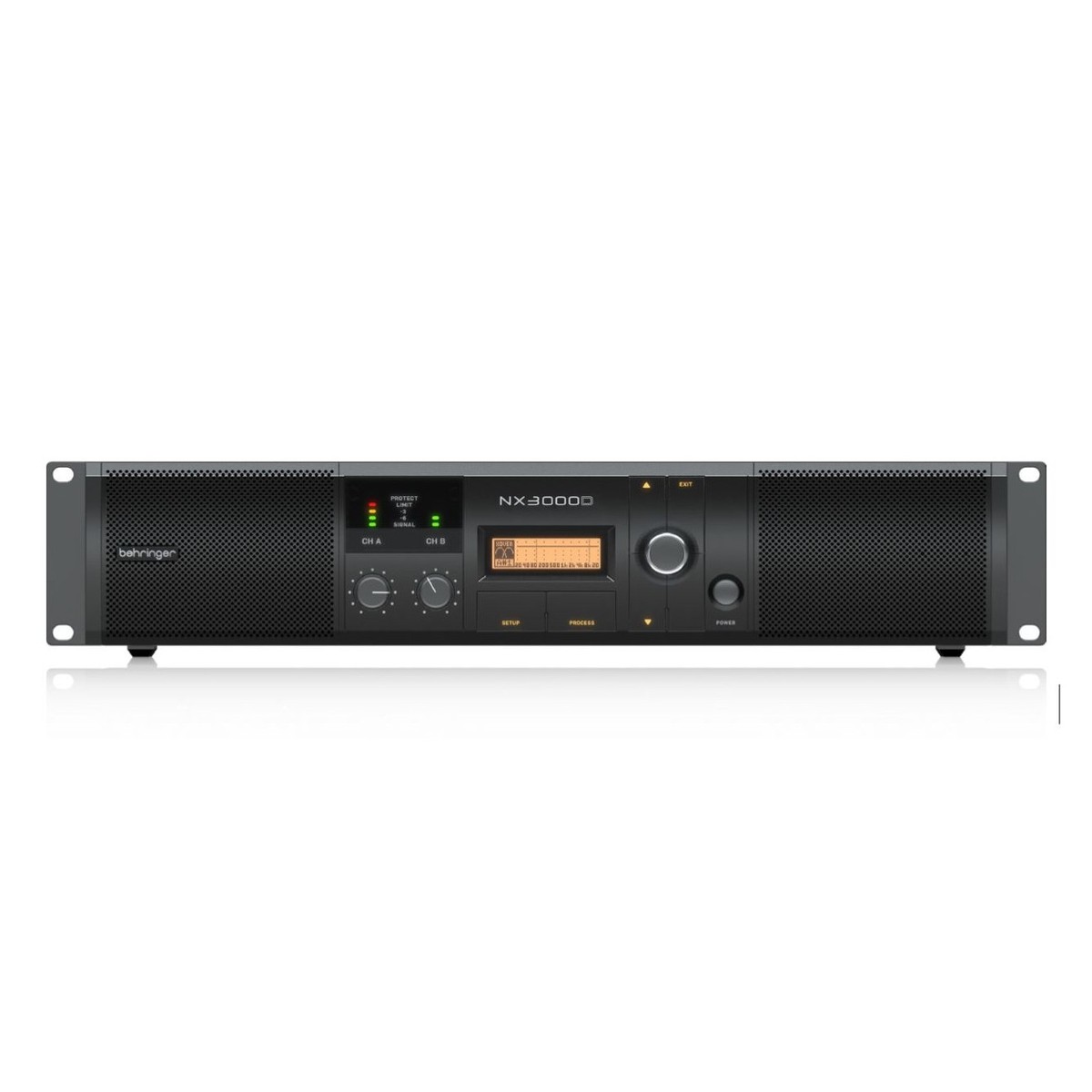 The Behringer NX3000D 3000W Class-D power amplifier with DSP is a high-performance amplifier for professional audio use. It is designed for DJs, live sound, and PA systems.